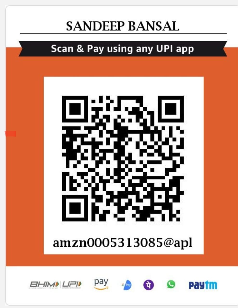 UPI ID amzn0005313085@apl